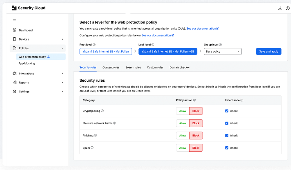 Manage each location and its devices, users and groups separately, pushing down profiles and apps from a single location.